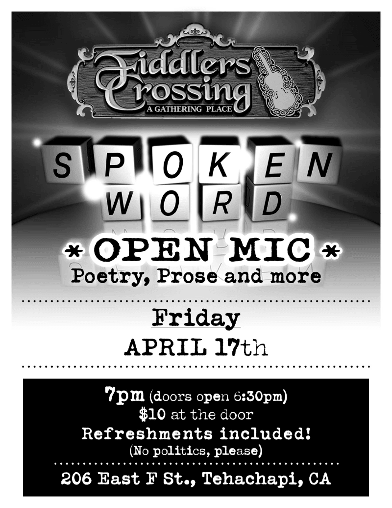 As of 2025, all Fiddlers Crossing concerts are ticketed events for the sake of clarity and simplicity. Tickets will always be available at Mountain Music, 206 East "F" St., Tehachapi, House of Wax Records, 122 S. Green St., Tehachapi as well as here on the website via a Venmo link. They can be reserved with a credit card by calling Mountain Music at (661-823-9994 during business hours.